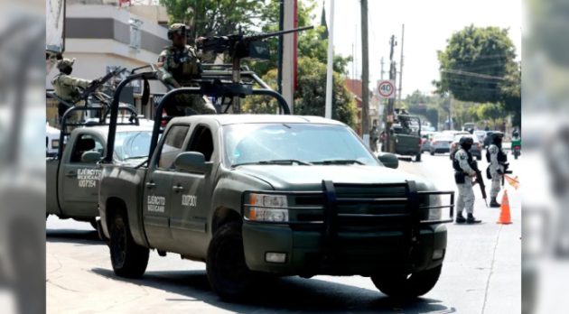 Militares mexicanos resguardan una funeraria en la ciudad de Guadalajara (oeste) en la que es velado el cuerpo del narcotraficante Nemesio «El Mencho» Oseguera, muerto hace una semana en un operativo castrense.