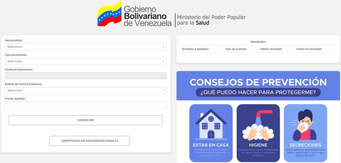 Las personas deben ingresar a: http://www.mpps.gob.ve/ y buscar en el lado izquierdo de la página el banner llamado consulta COVID-19 o directamente por el enlace el enlace: http://cert.mpps.gob.ve/, reseña Banca y Negocios.