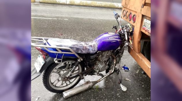 La información obtenida indica que el conductor del vehículo de dos ruedas transitaba en una moto marca Empire color Azul, placas AA2Y180J, cuando impactó de frente contra la parte trasera del vehículo de carga pesada color naranja, indica la nota de La Calle.