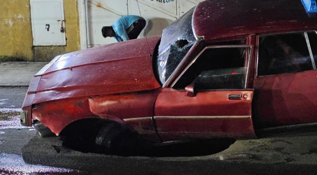Múltiples vehículos cayeron en un hueco de gran tamaño ubicado en la Calle 80, entre la avenida 74 y 74A, en las inmediaciones del centro comercial Las Tunas, en Maracaibo, estado Zulia.