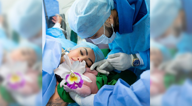 En la publicación se observa dos fotografías tomadas en el momento del nacimiento y en donde La Más Viral está acompañada del padre de Cattleya, Anuel AA. La cara de la pequeña es tapada con una flor con su mismo nombre.