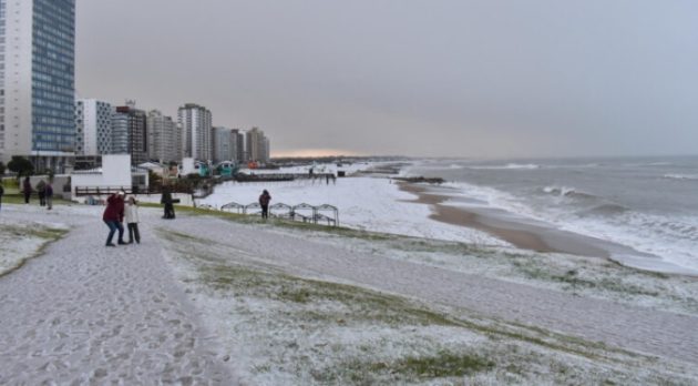 Una intensa ola de frío polar sorprendió este lunes a varias localidades costeras de la provincia de Buenos Aires, donde la nieve cubrió playas y ciudades balnearias, un fenómeno inusual que no se registraba desde 2013.