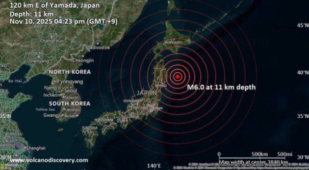 El temblor tuvo lugar a las 16:23 hora local (7:23 GMT) a 10 kilómetros de profundidad en aguas frente a la prefectura de Iwate, según datos de la Agencia Meteorológica de Japón (JMA), refiere la nota de EFE,.