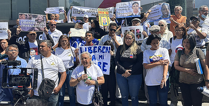 Representantes de organizaciones no gubernamentales y de agrupaciones gremiales protestaron este lunes en Caracas contra la condena a 16 años de prisión dictada la semana pasada a seis dirigentes sindicales, un hecho que ven como el escalamiento de la criminalización de la lucha de los trabajadores en Venezuela.