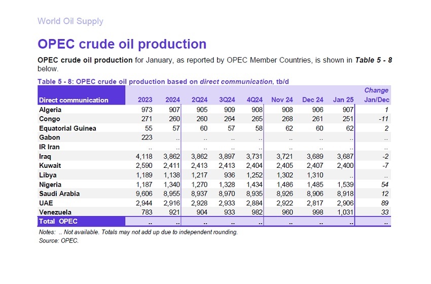La Organización de Países Exportadores de Petróleo (OPEP) informó que, en el mes de enero de 2025, Venezuela produjo un millón 31 mil barriles de petróleo diarios (bpd), según la data ofrecida por el Gobierno venezolano.