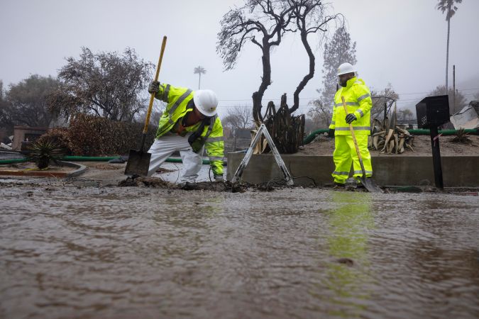 Debido a las lluvias, pueden ocurrir flujos de lodo y escombros hacia las carreteras en el área de Pacific Palisades y Malibu, con peligro de deslizamientos de tierra en la zona quemada por el incendio de enero.