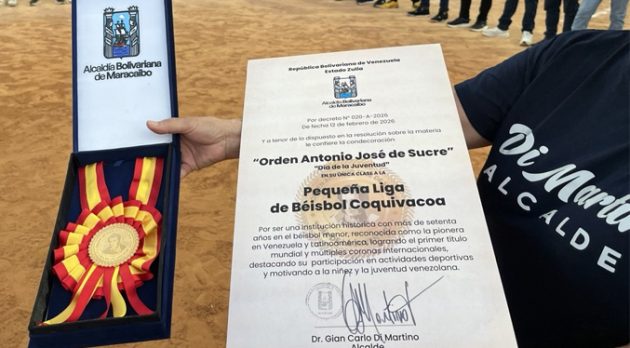 En un acto celebrado en el estadio de San Jacinto, el alcalde de Maracaibo, Gian Carlo Di Martino, hizo entrega de un reconocimiento especial a los integrantes de la Pequeña Liga de Béisbol Infantil Coquivacoa.