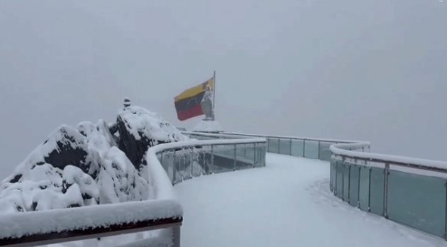 El domingo 17 de agosto, el Pico Espejo del Sistema Teleférico Mukumbarí, en Mérida, amaneció cubierto de nieve, según reportes de usuarios en redes sociales que compartieron imágenes del fenómeno.
