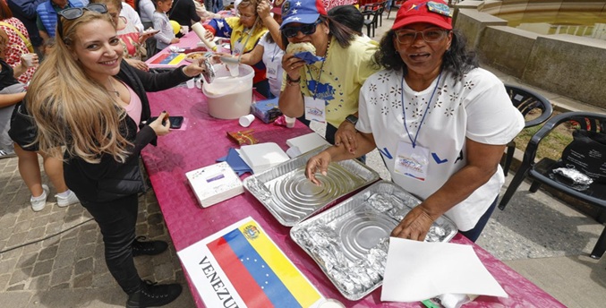 Ya en la parada de Venezuela, con once recetas diferentes, se terminaron en tiempo récord las arepas saladas y dulces, el asado negro, las empanadas de carne mechada, los tequeños, el dulce tres leches y el quesillo, que lleva leche condensada.