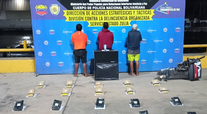 Durante labores de patrullaje en el Lago de Maracaibo, comisión de la División Contra La Delincuencia Organizada en la Redip Occidental PNB, procesó la detención de David Gerardo Paz Nava (31) , Carlos Eduardo Paz Nava (40) y Arturo Segundo González Paz (66), por el delito de tráfico de drogas, logrando incautarles veinte (20) envoltorios de regular tamaño de presunta marihuana, con un peso aproximado de 10,525kg, los cuales llevaban ocultos a bordo de una (01) embarcación tipo peñero, marca Yamaha con motor fuera de borda que también fue retenida como parte de las evidencias, además de un (01) teléfono celular.