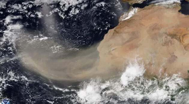 El polvo del Sahara consiste en una masa de aire caliente y seca cargada de partículas de arena que se forma sobre el desierto del Sahara debido a los fuertes vientos en la región norte de África.