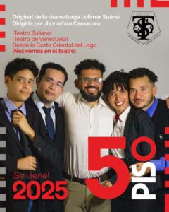 El próximo 29 de marzo, la agrupación cultural «Tejedores de Sueños» se enorgullece en presentar la comedia teatral «Quinto Piso», escrita por la destacada dramaturga y periodista Lolimar Suárez, oriunda de Maracaibo. La obra promete una experiencia inolvidable para los asistentes.