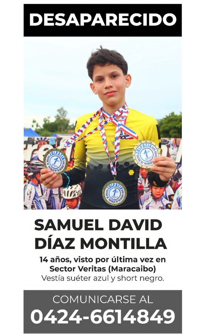 La mañana de este sábado, familiares del adolescente Samuel Díaz Montilla reportaron su desaparición en la ciudad de Maracaibo a través de las redes sociales.