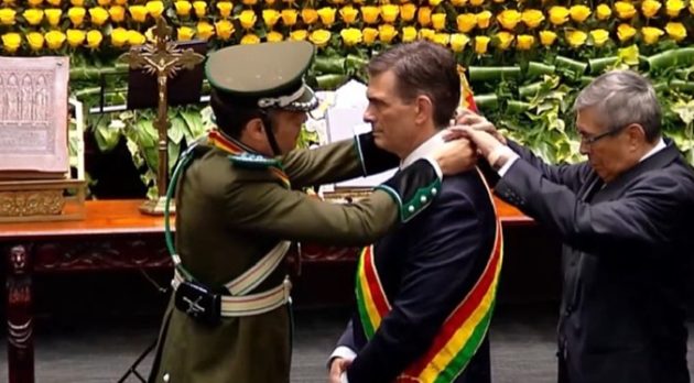«Dios, patria y familia, sí, juro», sostuvo el nuevo mandatario boliviano al tomar juramento.