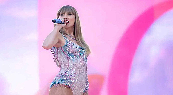 La tercera es una marca visual que abarca «una fotografía de Taylor Swift sosteniendo una guitarra rosa con una correa negra, mientras viste un body iridiscente multicolor y botas plateadas», un atuendo que está relacionado con sus actuaciones durante ‘The Eras Tour’.