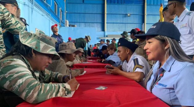 «Yo me alisto para mantener a Venezuela libre de guerras. No aceptamos que ningún imperio nos invada. Somos un pueblo de paz, somos los hijos de -Hugo- Chávez y de -Simón- Bolívar«, expreso Nidia Pérez trabajadora de la estatal eléctrica en el estado Aragua.