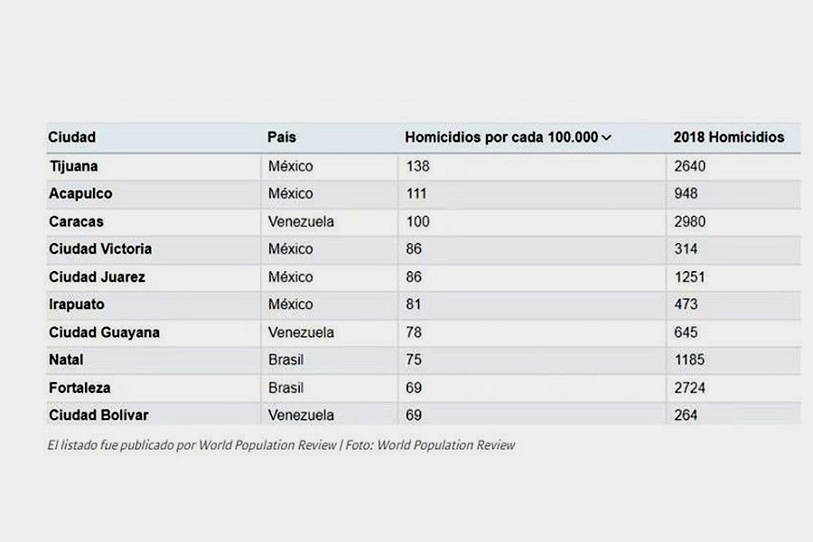 El país que tiene la mayor cantidad de ciudades peligrosas es Brasil con 17 en la lista, le sigue México con 12; pero los únicos países que tienen las 10 ciudades más peligrosas del planeta son México (cinco), seguido de Venezuela (tres) y Brasil (dos), detalla Tal Cual.