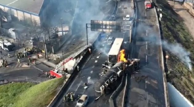 La explosión sucedió en la intersección de la autopista más importante del país, la Ruta 5, con una secundaria y generó un gran incendio que alcanzó a otros siete vehículos, que a la misma hora iban transitando por la autopista, y también un desguace de vehículos, informó la policía chilena, reseñó EFE.