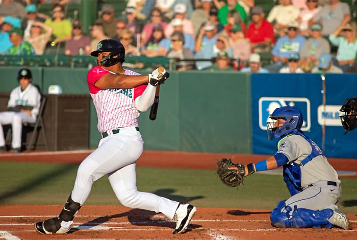 Un reto que le ha sentado bien, pues enfrentando a pitchers que en promedio son 4,5 años mayores, su línea ofensiva es una llamativa .292/.363/.569 (de 130-38), con cinco dobles, dos triples, nueve bambinazos, 23 anotadas, 23 fletadas y .932 de OPS, en 33 encuentros. Luego de comenzar con el Portland (Doble A), conjunto con el que disputó 33 compromisos (.256/.355/.393, 3 HR, 17 CI, .748 OPS).