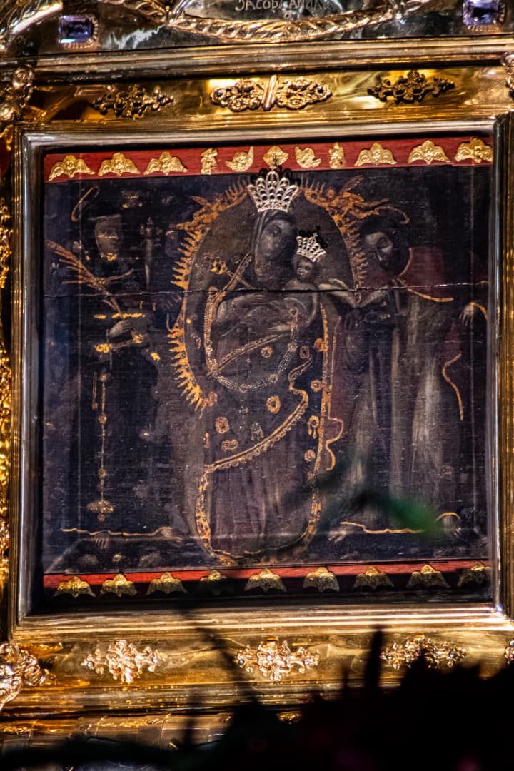 “Me encanta tomar fotos a los detalles de la Virgen. (…) El retablo tiene millones de detalles que mucha gente ignora. Por ejemplo, te puedo citar el más común, la famosa fisura que tiene el retablo. Esa abertura pasa a la altura de los cuatro corazones de las personas que están en el retablo. (…) Es como si las cuatro personas se hubieran alineado con la grieta que no es completa porque no parte el retablo”, explica el fotógrafo.