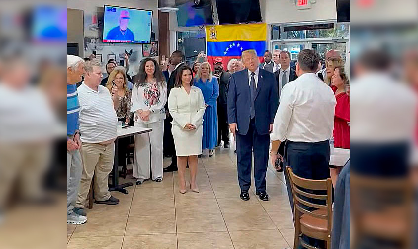 El presidente de EEUU, Donald Trump, se despidió de Florida este lunes visitando el icónico restaurante venezolano El Arepazo, donde compartió brevemente con los dueños del establecimiento y un grupo de exiliados.