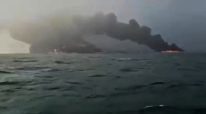 Imágenes difundidas por la cadena pública británica BBC, recibidas de testigos en el lugar, muestran lo que parecen ser las dos embarcaciones rodeadas de un espeso humo negro y varios puntos en llamas, refiere la nota de DW.