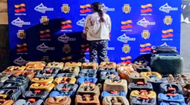 En el procedimiento fueron incautados mil 600 litros de combustible que estaba distribuido en contenedores de plástico y vidrio, los cuales se encontraban en una carretera del sector Santa Elena, detalla Unión Radio.