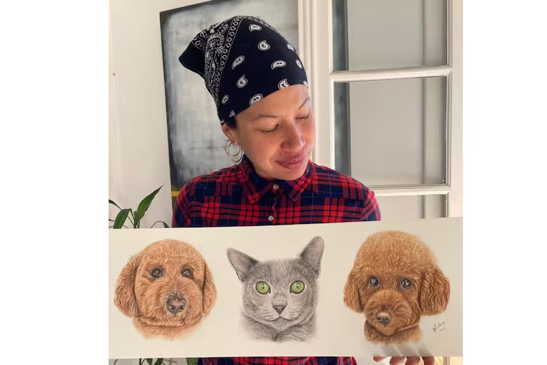 Ninguno de los poemas fue escrito en el hospital, sino que allí dibujaba: retrataba a los demás pacientes y, en especial, a Canelas, un perro que veía a través de fotos en el celular”, explica Ivette.