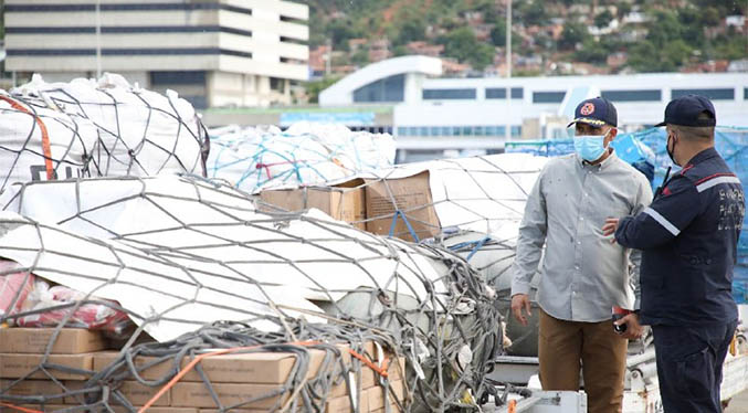 Indicó que un avión de la estatal aerolínea Conviasa partió del Aeropuerto Internacional Simón Bolívar de Maiquietía para transportar «en este primer vuelo, aproximadamente 30 toneladas de insumos, entre ellos: agua potable, alimentos y medicinas».