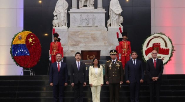 «Ha sido un verdadero honor acompañar al embajador de China en Venezuela, Lan Hu, ya la Vicepresidenta Ejecutiva, Delcy Rodríguez, en la ceremonia de ofrenda floral frente al sarcófago del Libertador Simón Bolívar. Este acto conmemora el 80.º aniversario de la Victoria en la Guerra de Resistencia del Pueblo Chino contra la Agresión Japonesa y la Guerra Antifascista Mundial«, puntualizó el Ministro.